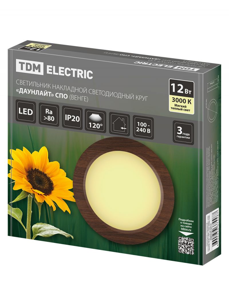Светильник накладной светодиодный круг "Даунлайт" СПО (венге) 12 Вт 170*32 мм 3000К TDM