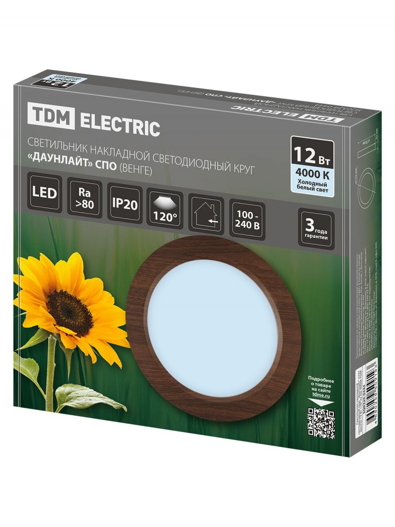 Светильник накладной светодиодный круг "Даунлайт" СПО (венге) 12 Вт 170*32 мм 4000К TDM