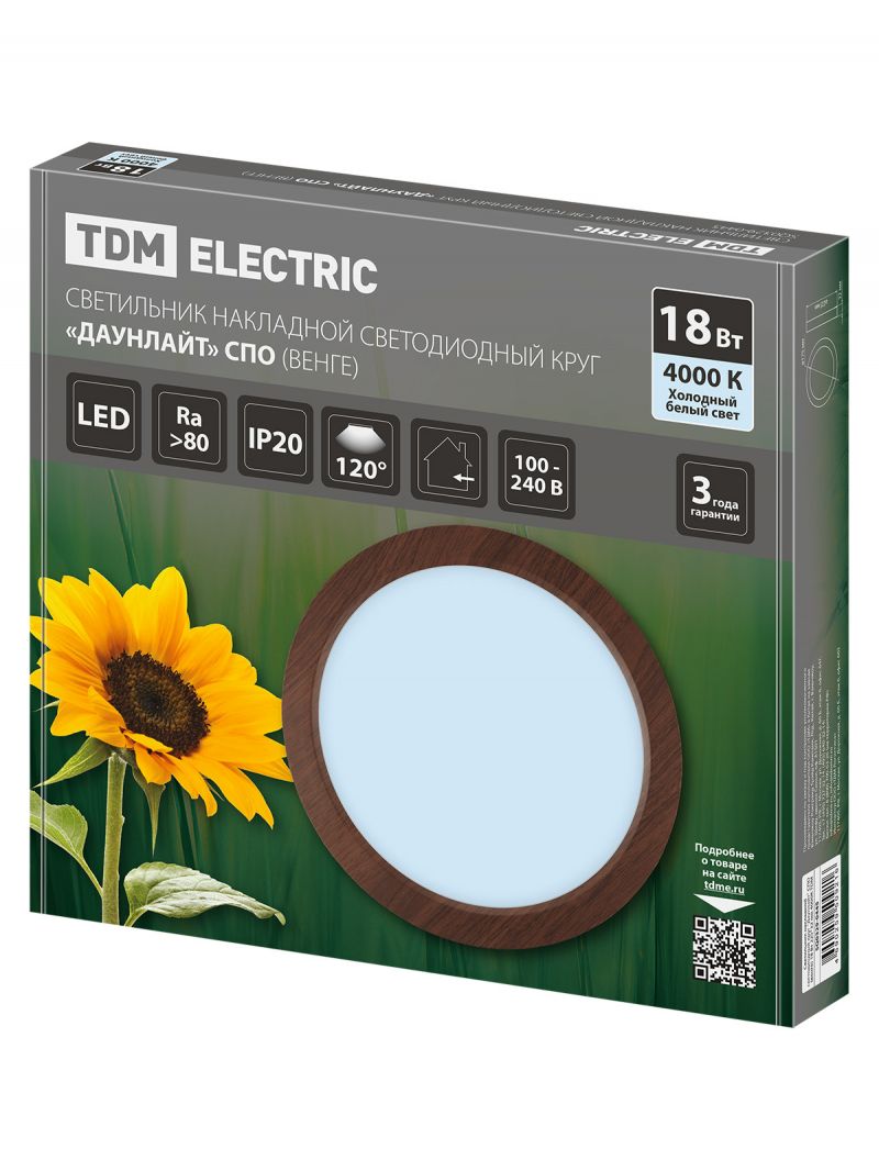 Светильник накладной светодиодный круг "Даунлайт" СПО (венге) 18 Вт 225*32 мм 4000К TDM