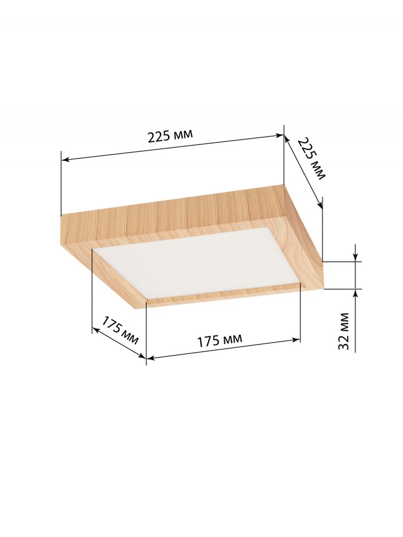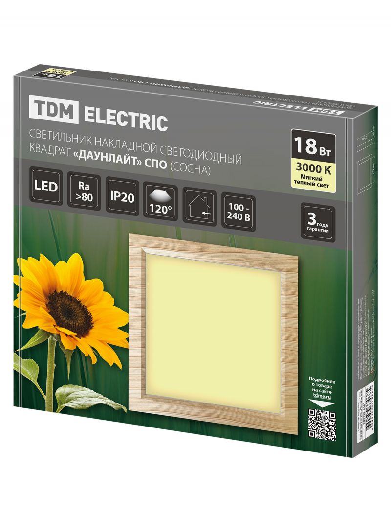 Светильник накладной светодиодный квадрат "Даунлайт" СПО (сосна) 18 Вт 225*225*32 мм 3000К TDM