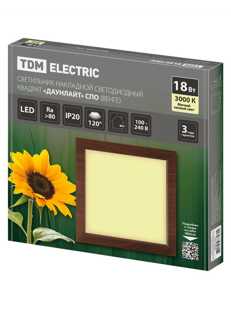 Светильник накладной светодиодный квадрат "Даунлайт" СПО (венге) 18 Вт 225*225*32 мм 3000К TDM