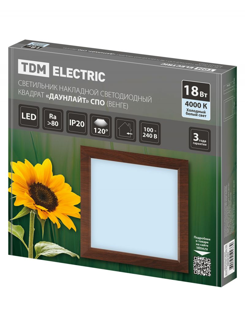 Светильник накладной светодиодный квадрат "Даунлайт" СПО (венге) 18 Вт 225*225*32 мм 4000К TDM