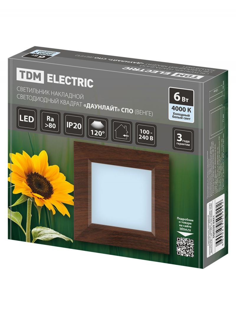 Светильник накладной светодиодный квадрат "Даунлайт" СПО (венге) 6 Вт 120*120*32 мм 4000К TDM