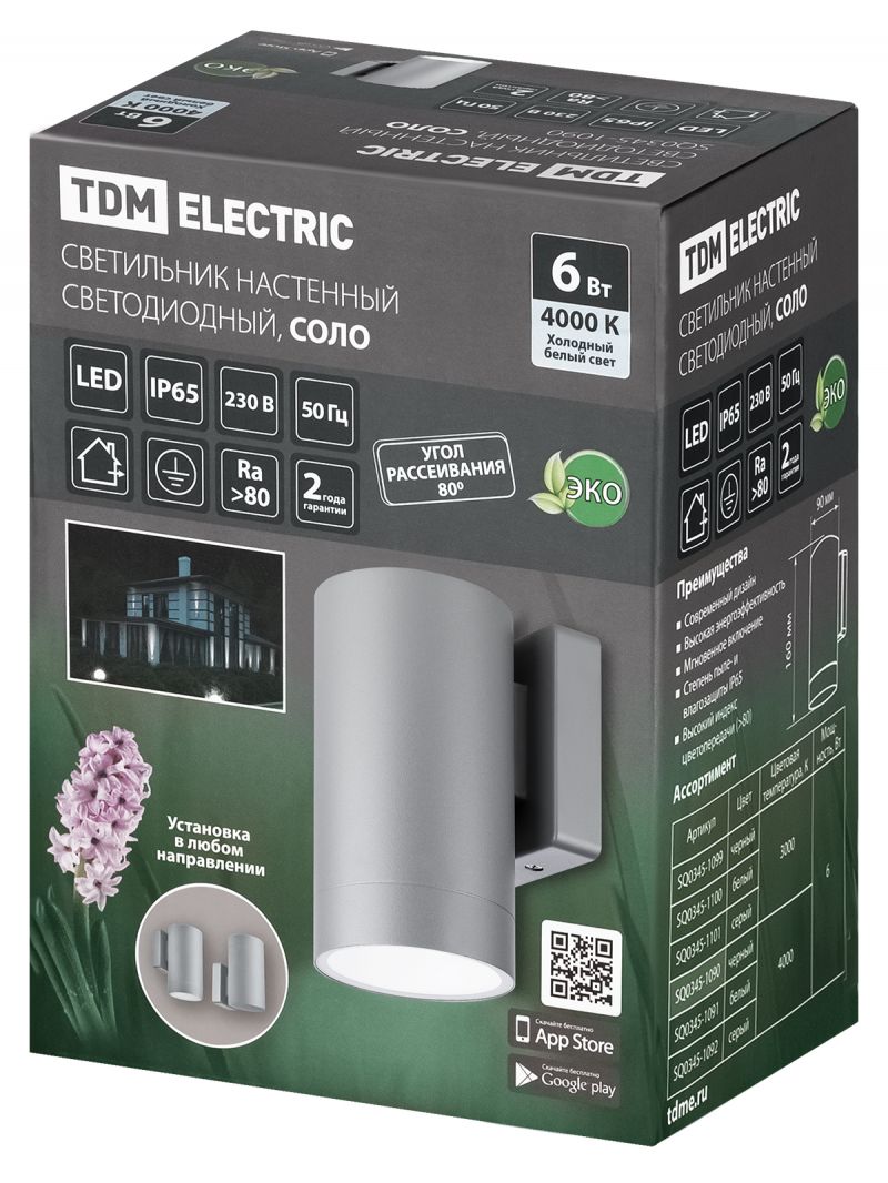 Светильник настенный LED, Соло, 6 Вт, 4000 К, H160 мм, алюм./сер., IP65, TDM