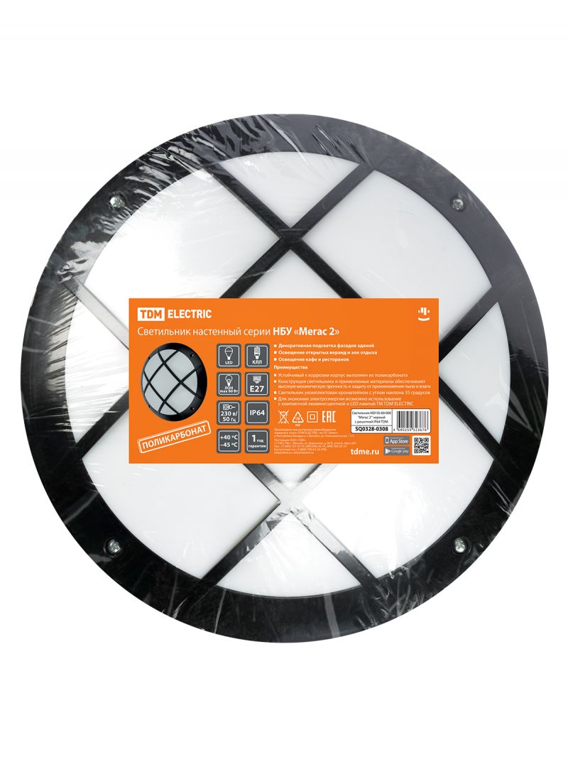 Светильник НБУ 05-60-008 "Мегас 2" черный с решеткой IP64 TDM