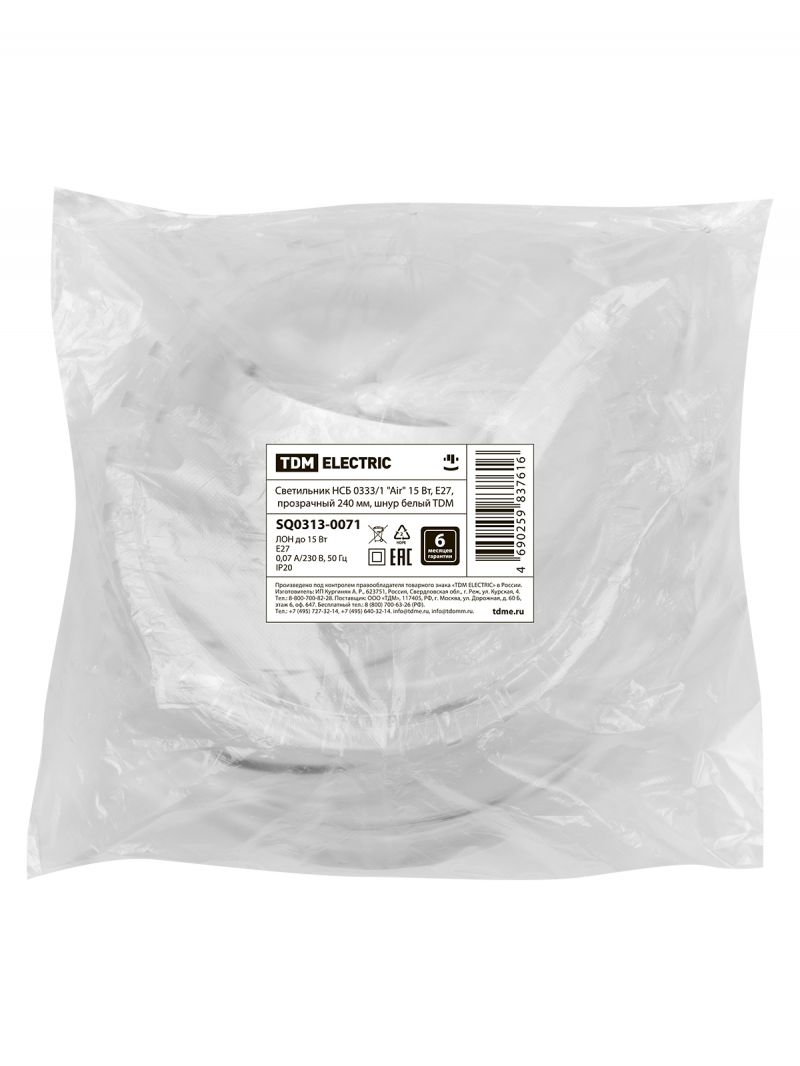 Светильник НСБ 0333/1 "Air" 15 Вт, E27, прозрачный 240 мм, шнур белый TDM
