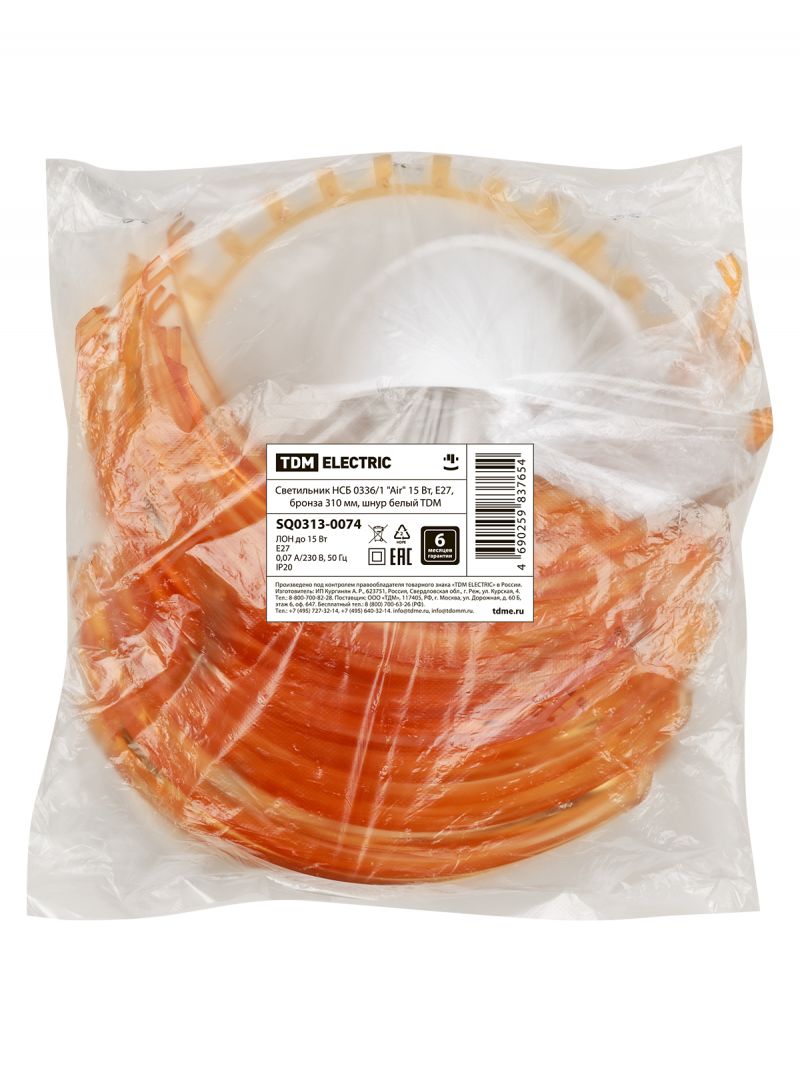 Светильник НСБ 0336/1 "Air" 15 Вт, E27, бронза 310 мм, шнур белый TDM