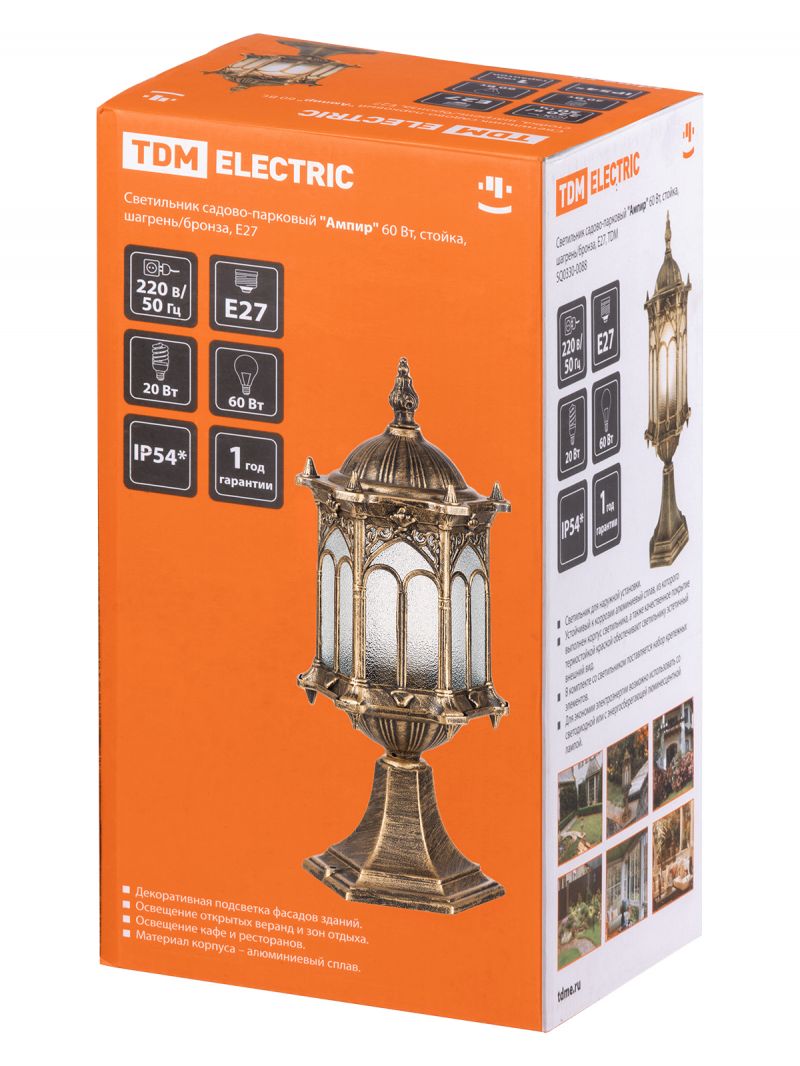 Светильник садово-парковый "Ампир" 60 Вт, стойка шагрень/бронза Е27, TDM