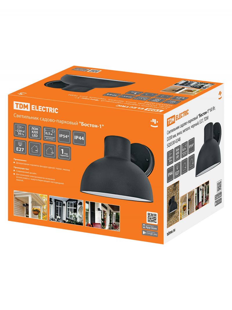 Светильник садово-парковый "Бостон-1" 60 Вт, D200 мм, вниз, металл, черный, Е27, TDM