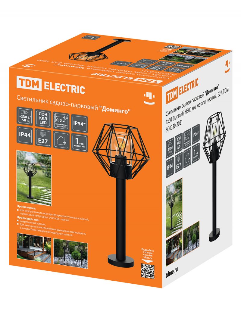 Светильник садово-парковый "Доминго" 1х60 Вт, столб, H500 мм, металл, черный, Е27, TDM