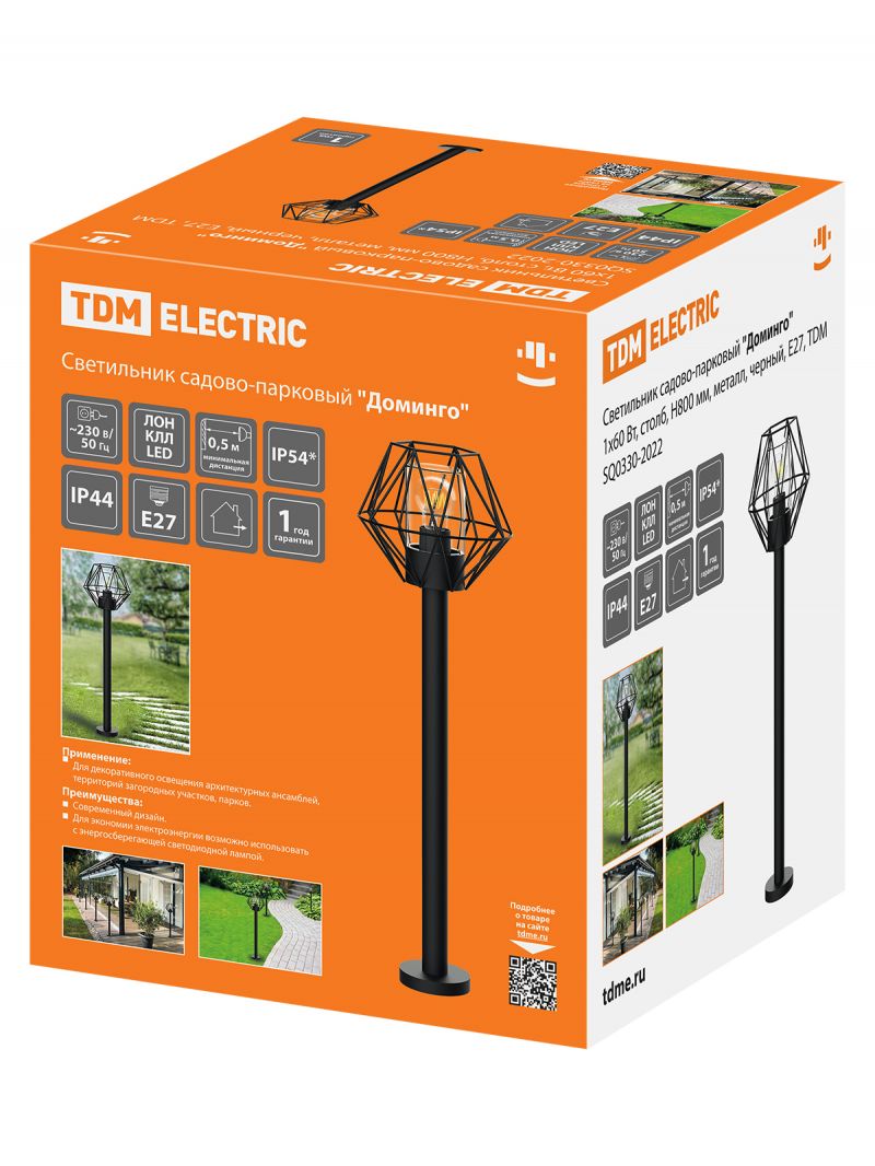 Светильник садово-парковый "Доминго" 1х60 Вт, столб, H800 мм, металл, черный, Е27, TDM
