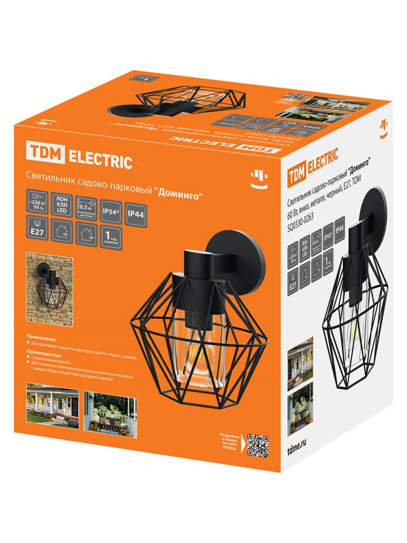 Светильник садово-парковый "Доминго" 60 Вт, вниз, металл, черный, Е27, TDM