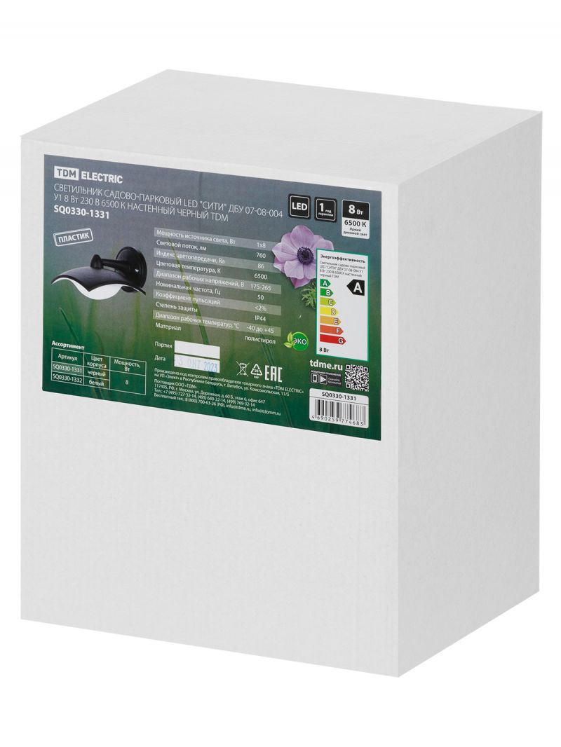 Светильник садово-парковый LED "СИТИ" ДБУ 07-08-004 У1 8 Вт 230 В 6500 К настенный черный TDM