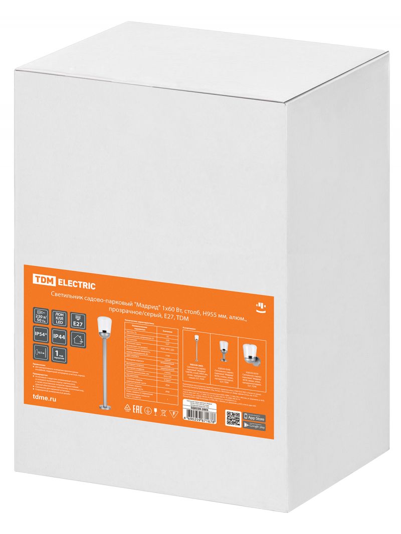 Светильник садово-парковый "Мадрид" 1х60 Вт, столб, H955 мм, алюм., прозрачное/серый, Е27, TDM