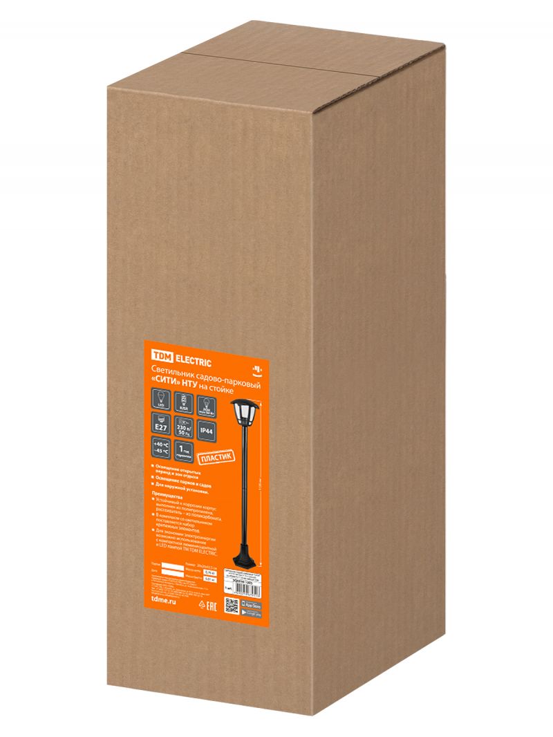 Светильник садово-парковый "СИТИ" НТУ 07-60-002 У1 4-х гранник на стойке h=1120 мм черный TDM