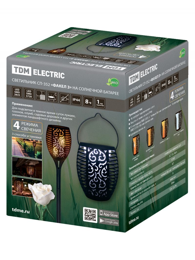 Светильник СП-351 "Факел 2" на солнечной батарее, 12х12х79 см, пластик, черный, 54 LED, TDM