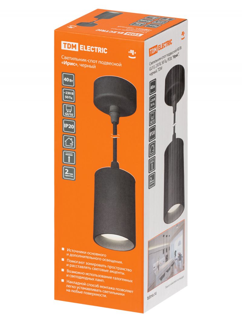Светильник-спот подвесной 40 Вт, GU10, 230 В, 50 Гц, IP20, "Ирис", черный, TDM