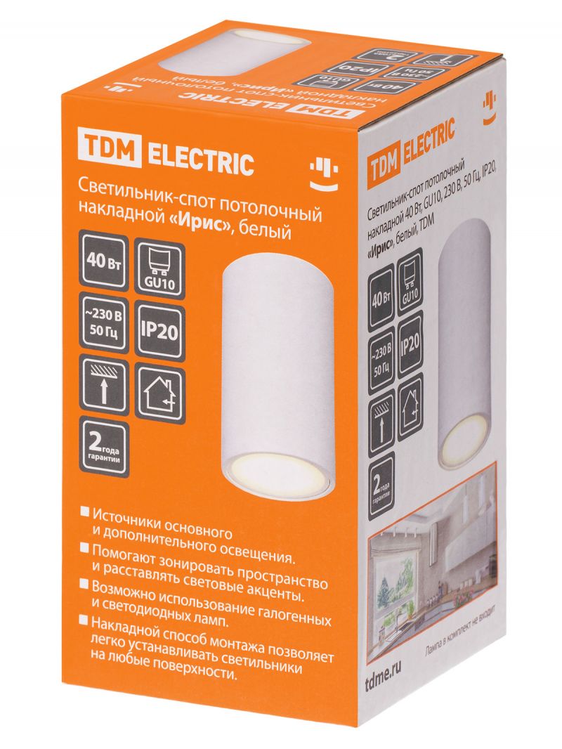 Светильник-спот потолочный накладной 40 Вт, GU10, 230 В, 50 Гц, IP20, "Ирис", белый, TDM