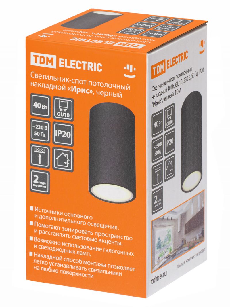 Светильник-спот потолочный накладной 40 Вт, GU10, 230 В, 50 Гц, IP20, "Ирис", черный, TDM