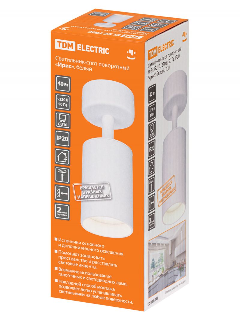 Светильник-спот поворотный 40 Вт, GU10, 230 В, 50 Гц, IP20, "Ирис", белый, TDM