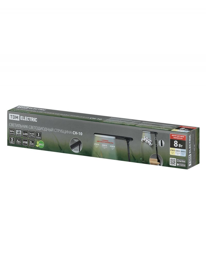 Светильник светодиодный струбцина СН-10, 8 Вт, телескопич., сенс-димм, 2700-6500 К, USB, черный, TDM