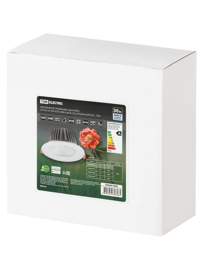 Светильник встраиваемый "Даунлайт" LED DCL-01-030 30 Вт, 4000 К, 80 Ra, IP20, прозрачный расс., TDM