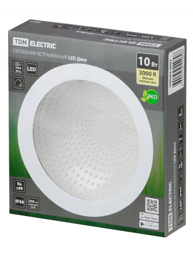 Светильник встраиваемый LED Деко 05, 10 Вт, 3000K, кругл, D170 мм, белый, IP44, TDM