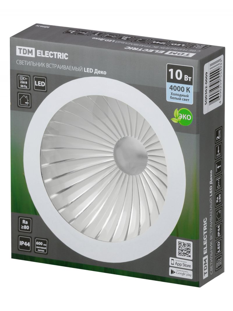 Светильник встраиваемый LED Деко 06, 10 Вт, 4000K, кругл, D170 мм, хром./бел., IP44, TDM