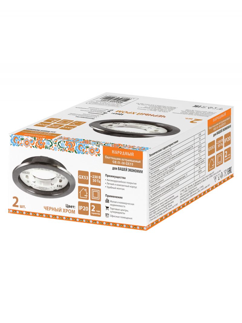 Светильник встраиваемый СВ 01-08 GX53 220 В 50 Гц, черный хром, 2 шт/уп, Народный