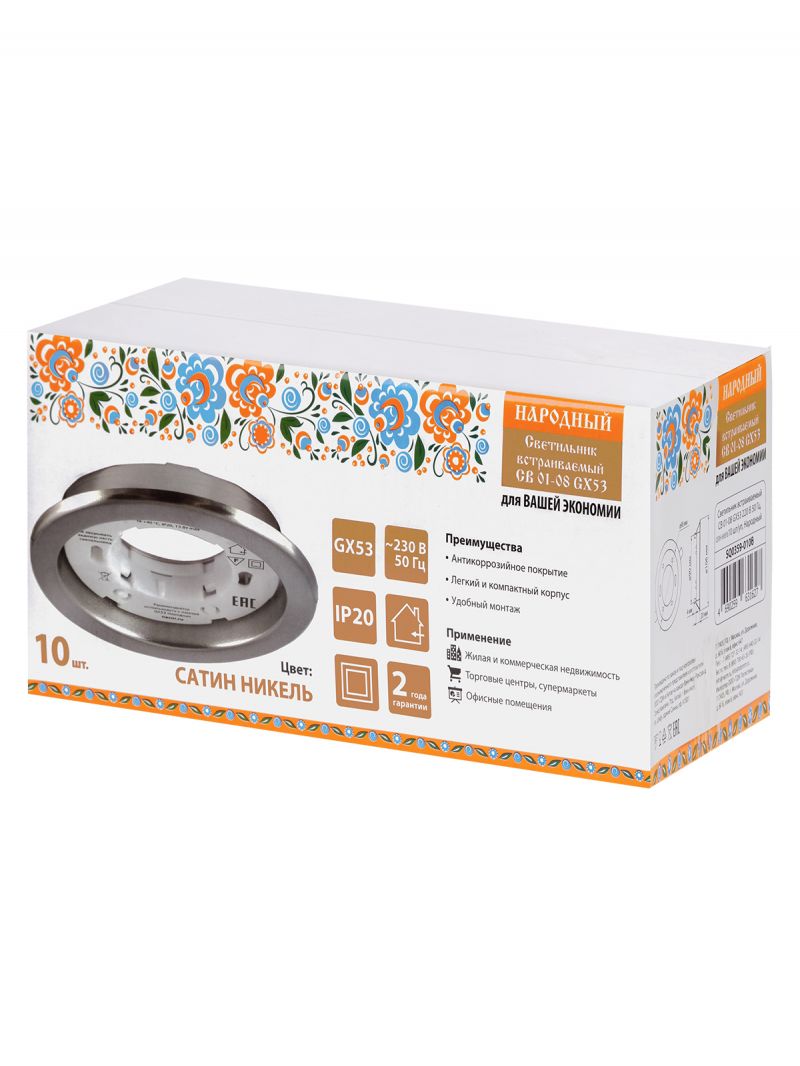 Светильник встраиваемый СВ 01-08 GX53 220 В 50 Гц, сатин никель, 10 шт/уп, Народный