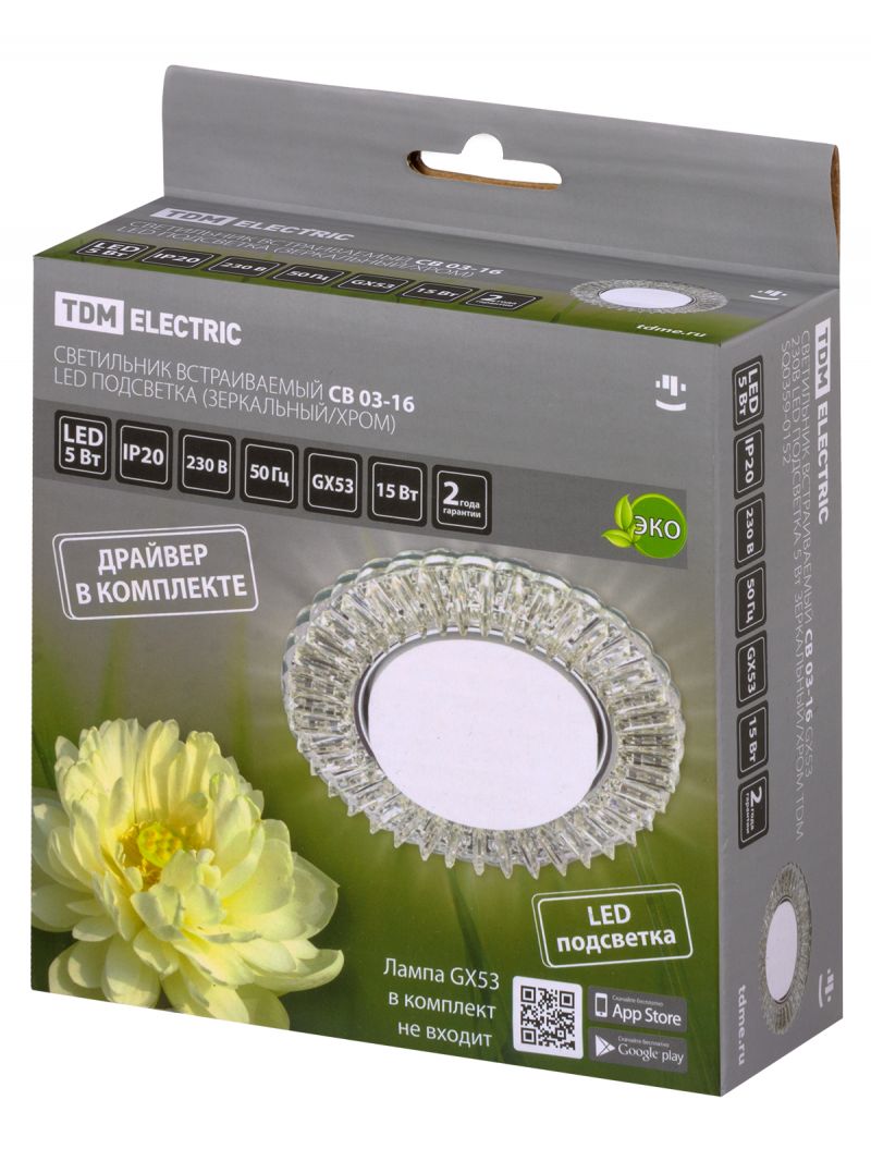 Светильник встраиваемый СВ 03-16 GX53 230В LED подсветка 5 Вт зеркальный/хром TDM