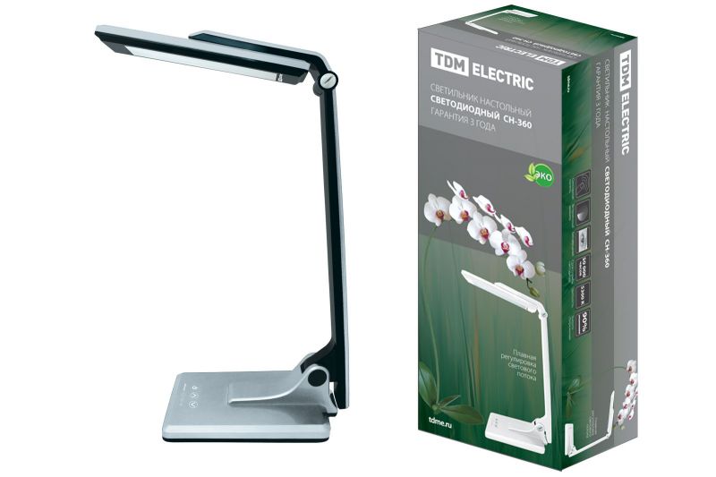 Светильник светодиодный настольный СН-360, складной, сенсор-диммер, 220 В, 10 Вт, 5300 К хром TDM