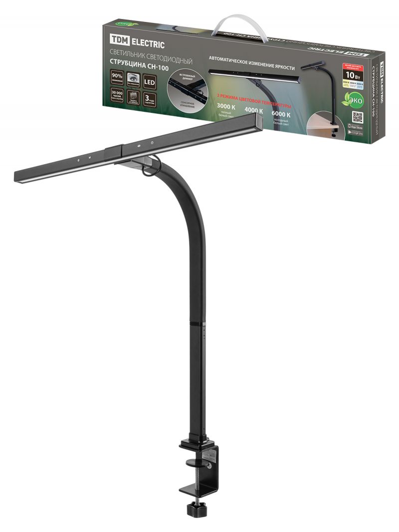 Светильник светодиод. струбцина СН-100, гибкий, сенс-димм, 10Вт, 3000-6000 К, авт.рег, черн. TDM