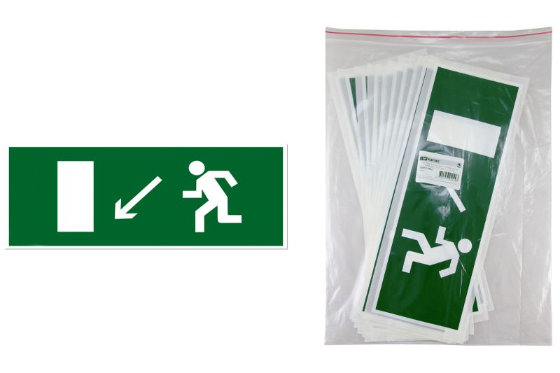 Знак "Направление к эвакуационному выходу налево вниз" 350х124мм для ССА инд. упаковка TDM
