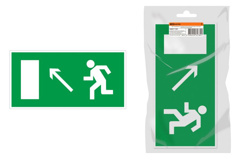 Знак "Направление к эвакуационному выходу налево вверх" 350х124мм для ССА инд. упаковка TDM