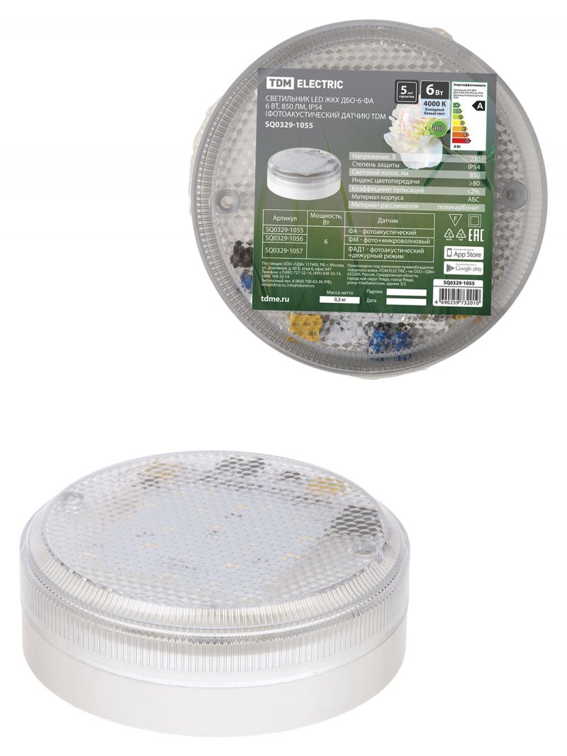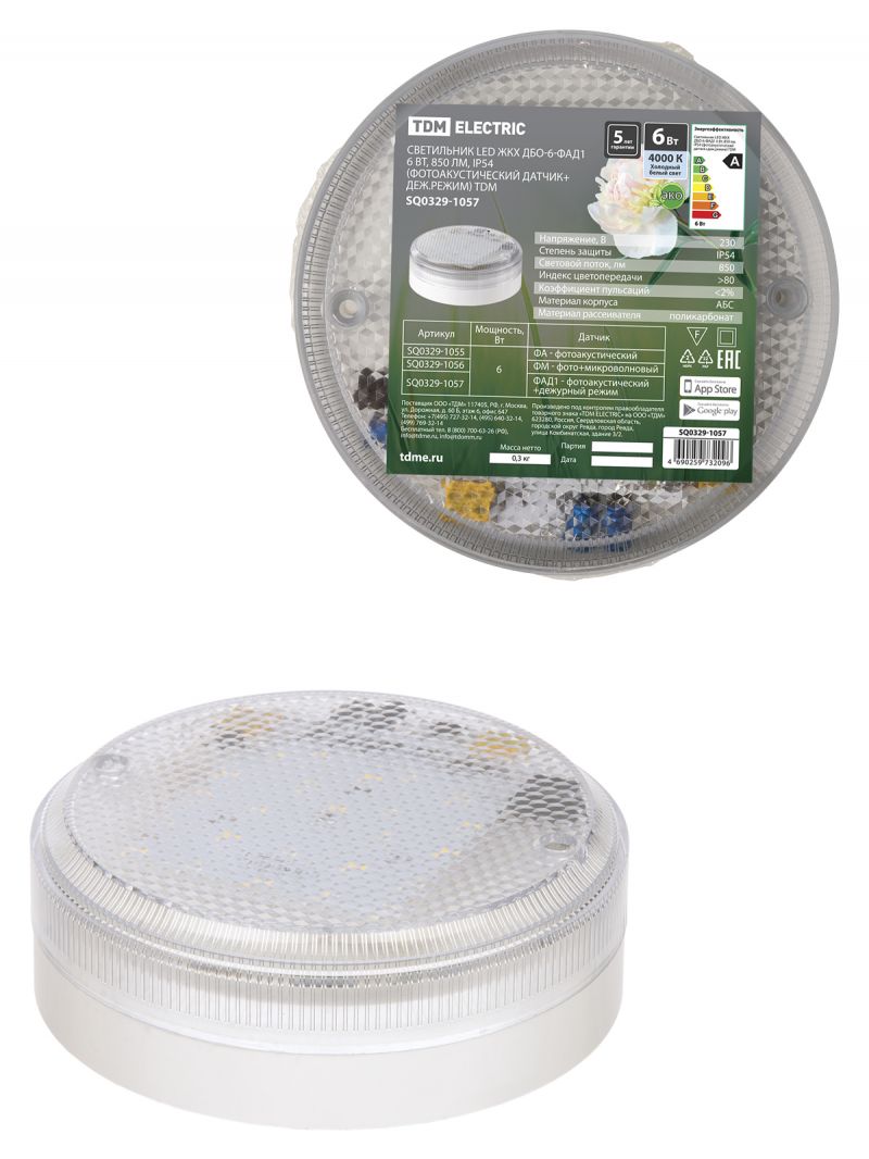 Светильник LED ЖКХ ДБО-6-ФАД1 6 Вт, 850 лм, IP54 (фотоакустический датчик+деж.режим) TDM