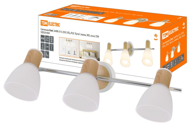 Светильник Спот, 3х40Вт, Е14, 230 В, 50 Гц, IP20, "Бутон", планка, ЭКО, сосна, TDM