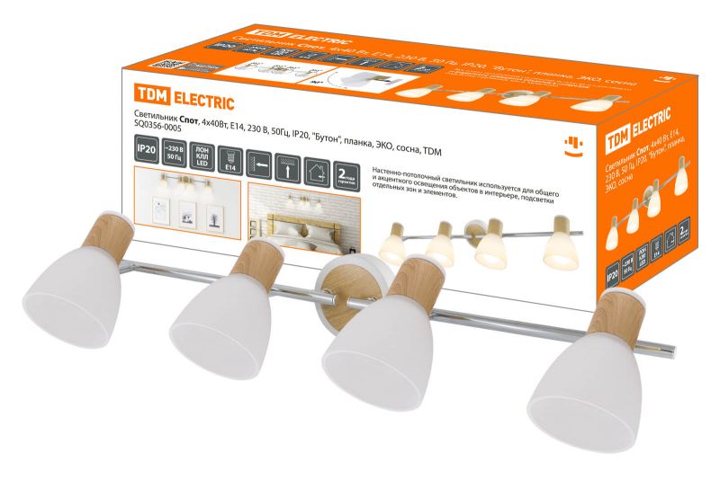 Светильник Спот, 4х40Вт, Е14, 230 В, 50 Гц, IP20, "Бутон", планка, ЭКО, сосна, TDM