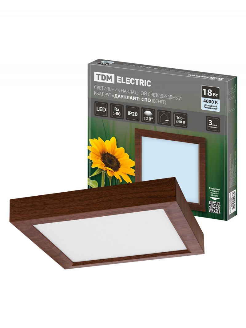 Светильник накладной светодиодный квадрат "Даунлайт" СПО (венге) 18 Вт 225*225*32 мм 4000К TDM