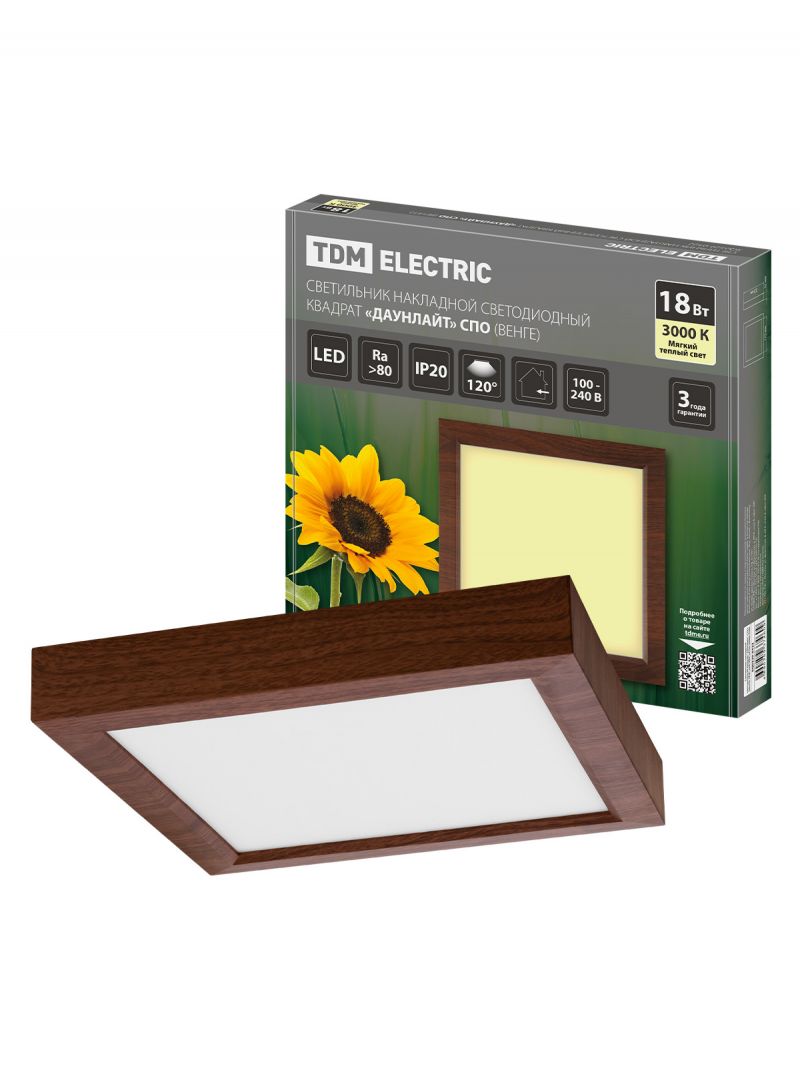 Светильник накладной светодиодный квадрат "Даунлайт" СПО (венге) 18 Вт 225*225*32 мм 3000К TDM