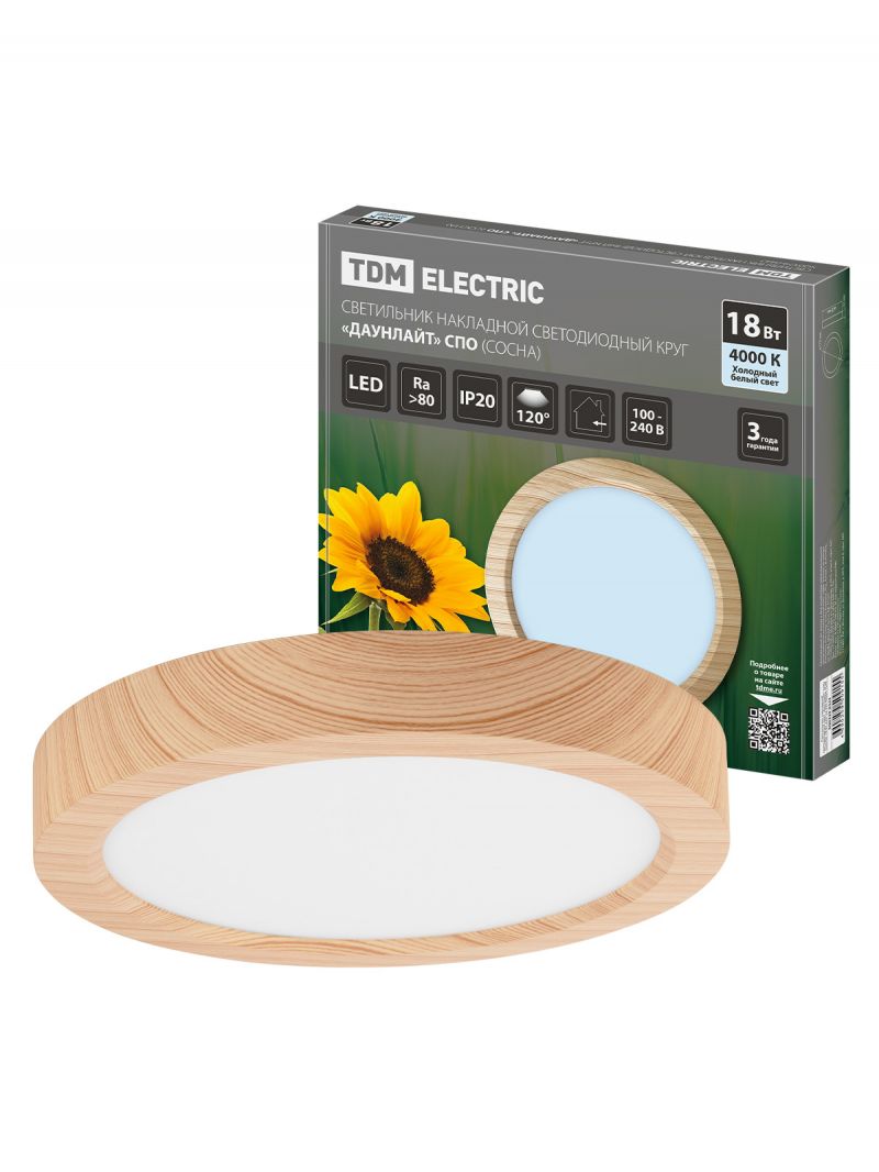 Светильник накладной светодиодный круг "Даунлайт" СПО (сосна) 18 Вт 225*32 мм 4000К TDM