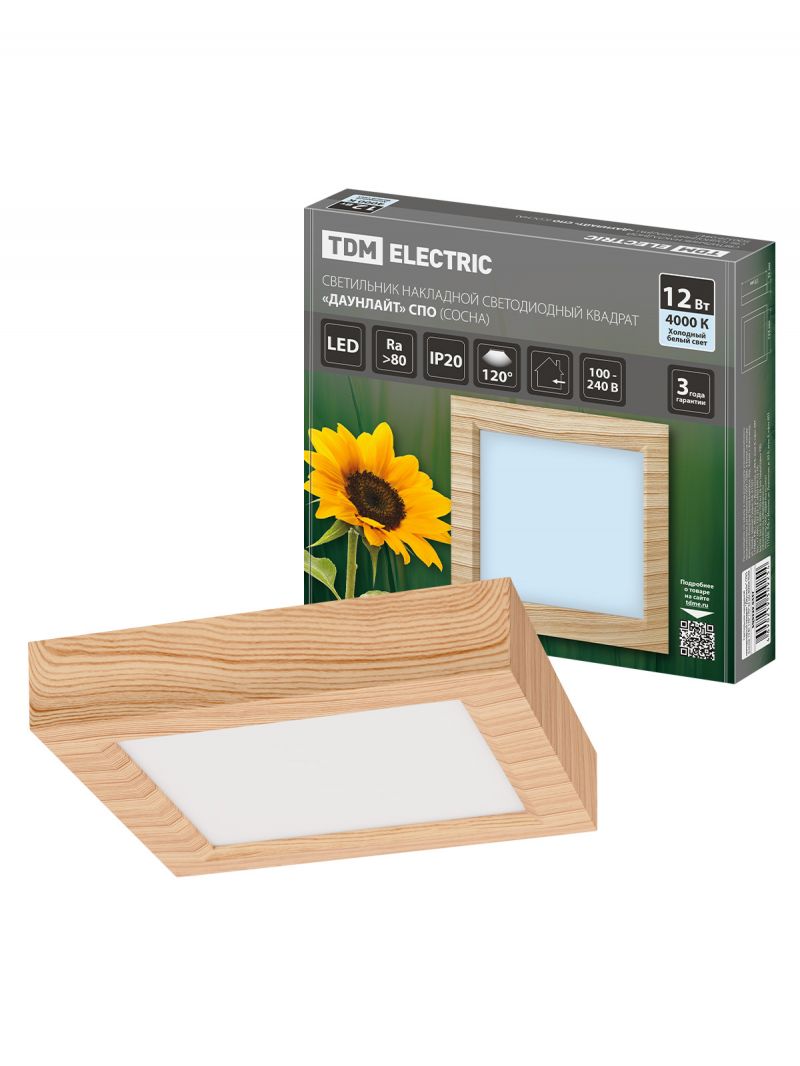 Светильник накладной светодиодный квадрат "Даунлайт" СПО (сосна) 12 Вт 170*170*32 мм 4000К TDM
