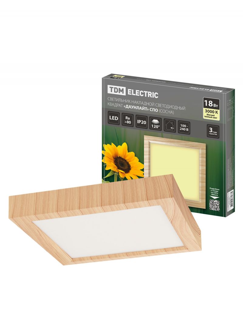 Светильник накладной светодиодный квадрат "Даунлайт" СПО (сосна) 18 Вт 225*225*32 мм 3000К TDM