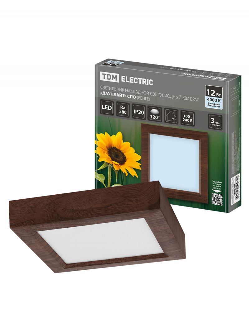 Светильник накладной светодиодный квадрат "Даунлайт" СПО (венге) 12 Вт 170*170*32 мм 4000К TDM