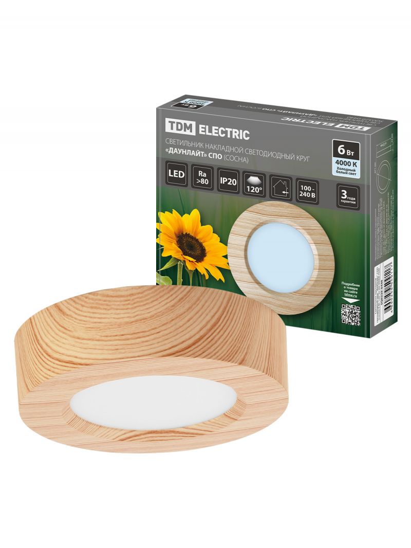 Светильник накладной светодиодный круг "Даунлайт" СПО (сосна) 6 Вт 120*32 мм 4000К TDM