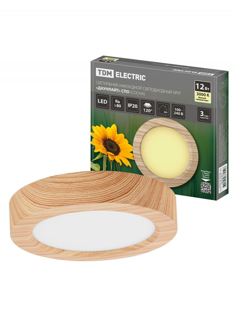 Светильник накладной светодиодный круг "Даунлайт" СПО (сосна) 12 Вт 170*32 мм 3000К TDM