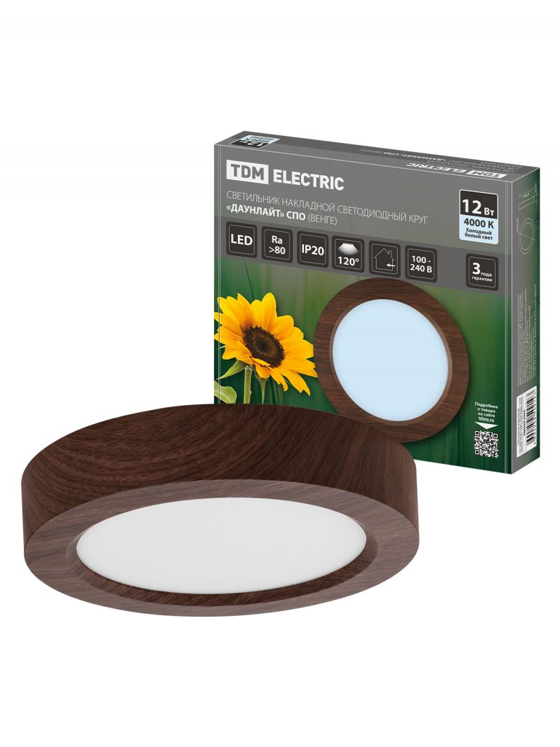 Светильник накладной светодиодный круг "Даунлайт" СПО (венге) 12 Вт 170*32 мм 4000К TDM