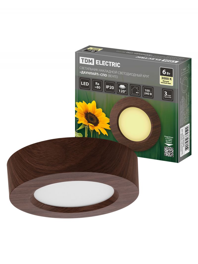 Светильник накладной светодиодный круг "Даунлайт" СПО (венге) 6 Вт 120*32 мм 3000К TDM