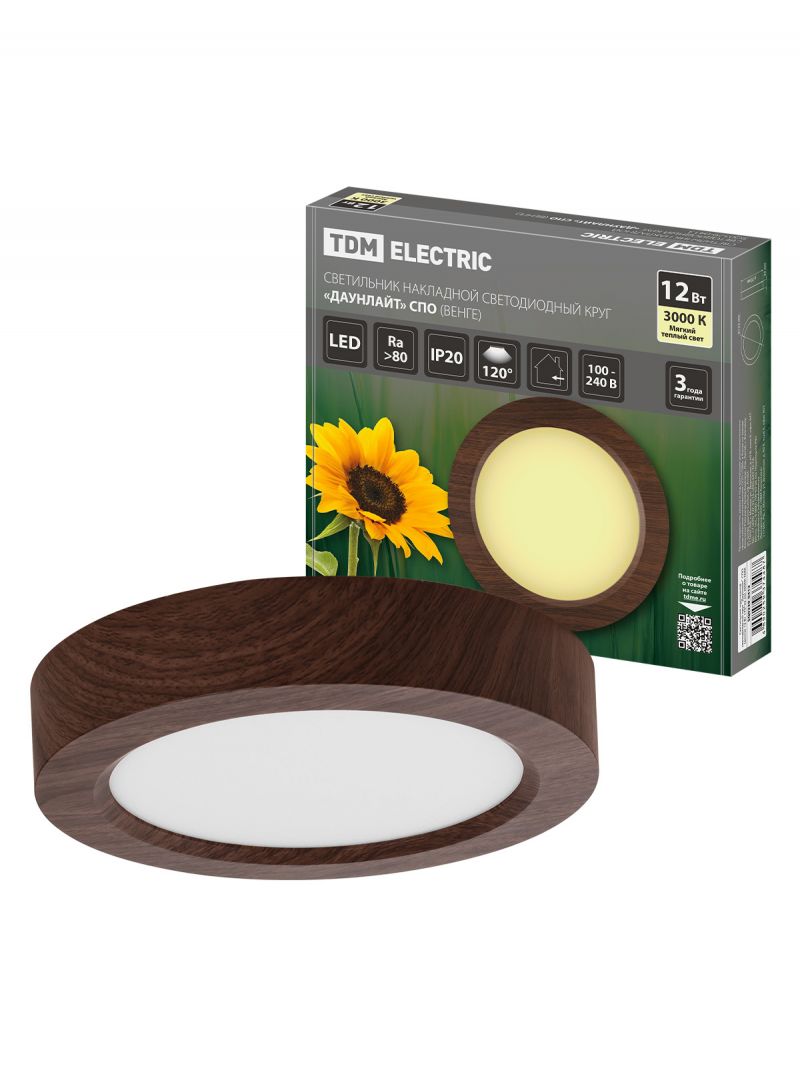 Светильник накладной светодиодный круг "Даунлайт" СПО (венге) 12 Вт 170*32 мм 3000К TDM