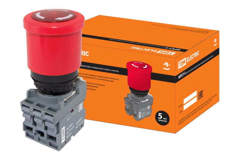 Кнопка грибовидная МРМ1-11R(LED) в сборе d40мм/220B 1з+1р красная TDM